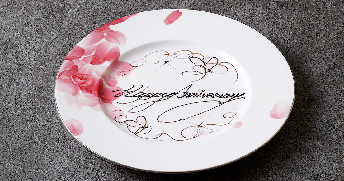 絵柄のお皿に、ご希望のメッセージを添えてご用意致します。