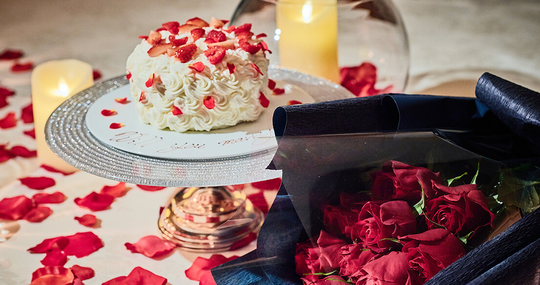A candlelit dinner is paired with a bouquet of red roses and a special cake to honor the occasion. Afterward, step out onto the rooftop terrace for a commemorative photo—capturing a moment that will live forever in your heart.