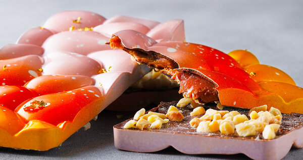 風味豊かなジャムやガナッシュを閉じ込め、その味わいをそのまま表面の美しいグラデーションに表現した、色彩を味わうようなアートなタブレットショコラです。大切な人へ想いを伝える特別な日に、記憶に残る華やかなショコラをお届けいたします。