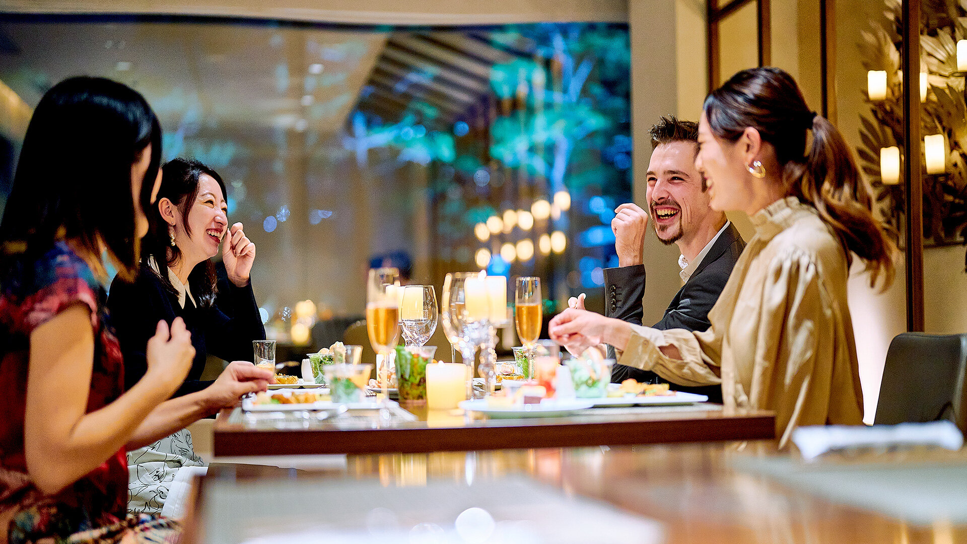 親しい仲間や女子会、同僚、お仕事でのフランクな会食など、ブッフェレストランでフレッシュ・ビューティー・フレッシュのコンセプトで、「出来立て」「楽しい」「おいしい」を感じられるシェフズライブキッチンの「フリードリンク」プラン。