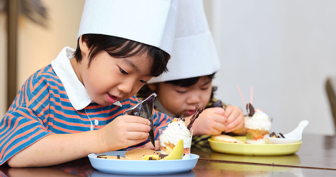 お子様たちが楽しめるキッズシェフ体験をご用意しました。ファミリーでお食事をお召し上がりながら、お子様とご一緒に楽しい思い出になるひとときをお過ごしください。