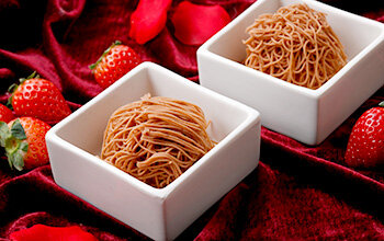 料理長特製、目の前で絞り出すライブフレッシュモンブランは絹糸の様な細さで絞り出すことで、口の中でとろけるエアリーな食感を生み出します。