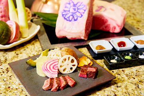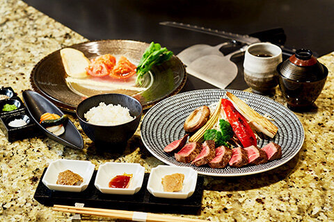 「料理長 特選食材」「匠の技」「おいしい」が競演する、世界のVIP をおもてなししてきた経験と技を具えた料理長 馬原雄一によるヘルシーな鉄板焼をお楽しみください。