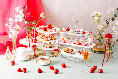 春を待ちわびる季節に贈る、華やかな「ストロベリーブロッサムアフタヌーンティー」が登場。瑞々しく甘酸っぱいいちごを主役に、ふんわりと桜の香りを添えたスイーツの数々が麗しい春の余韻を演出いたします。桜色に包まれる優雅な世界観の中で、苺の甘い誘惑に心ときめく至福のティータイムをお楽しみください。