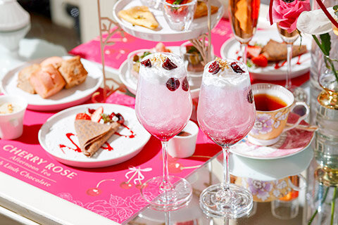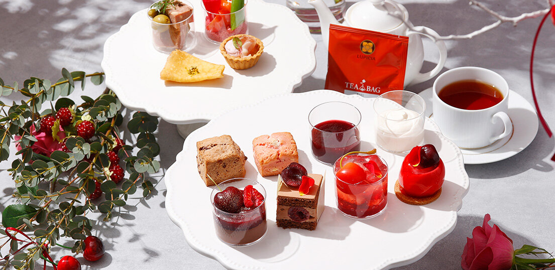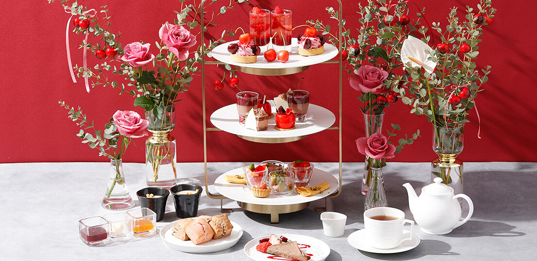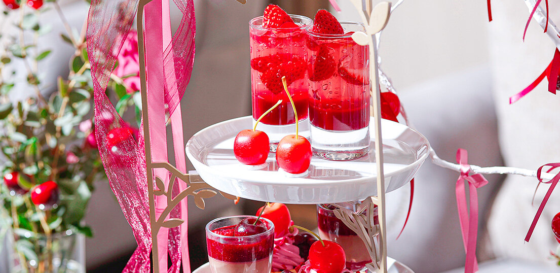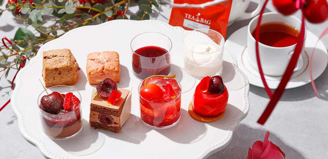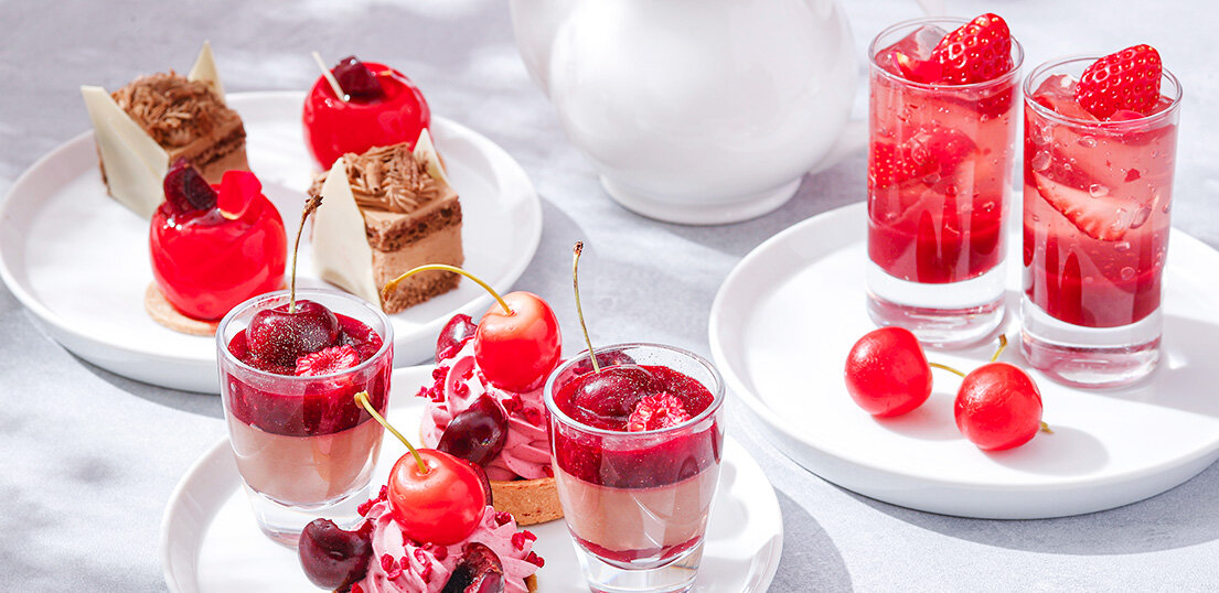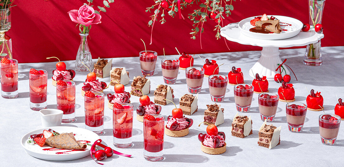 甘酸っぱいチェリーと優雅に香るローズに、濃厚なチョコレートを合わせた華やかなスイーツが揃います。