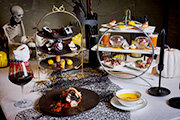 ガイコツが暮らすゴーストハウスをティースタンドで表現した、期間限定のハロウィンアフタヌーンティーが登場。モンスターや黒猫、お墓などをイメージしたブラック基調のスイーツをラインナップいたしました。不気味さと遊び心が共存するゴーストハウスの世界観をお届けいたします。
