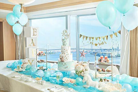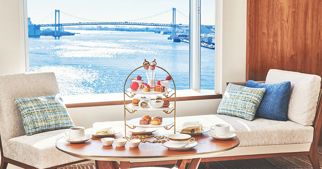 レインボーブリッジを臨むベイビュールームまたは隅田川を望むリバービュールームにて、季節のアフタヌーンティーをお楽しみいただけます。プライベートな空間で水辺の景色とともに優雅なティータイムをお過ごしください。