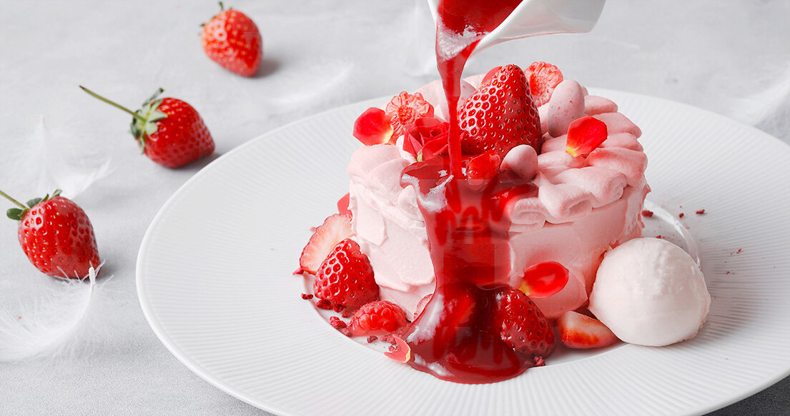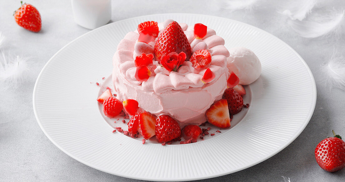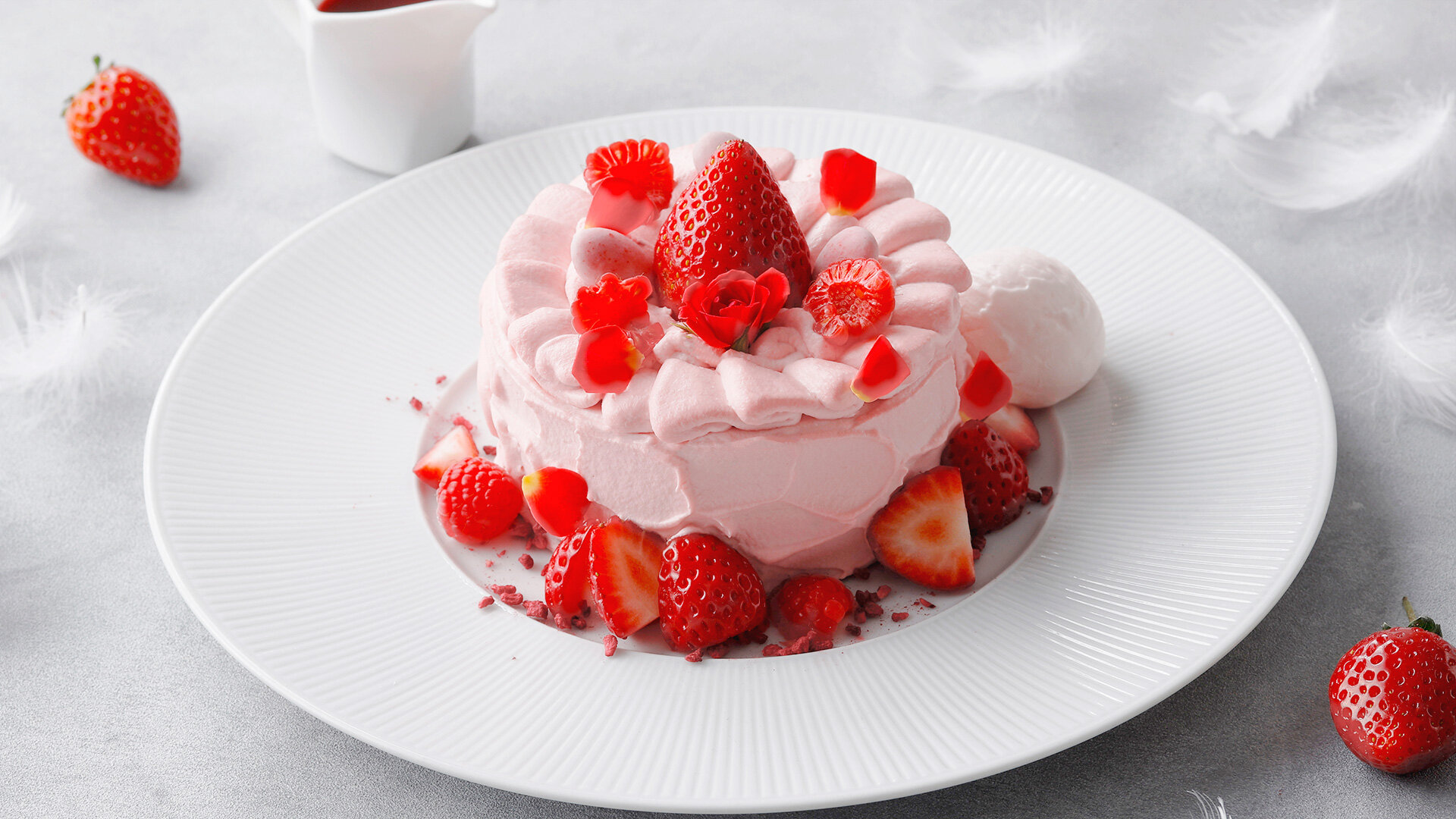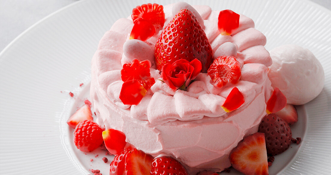 トップにはいちごやラズベリー、ベルローズをあしらい可憐なビジュアルに仕上げました。