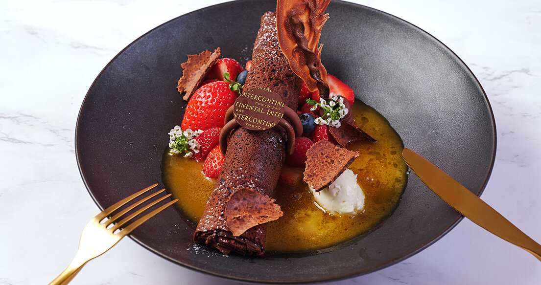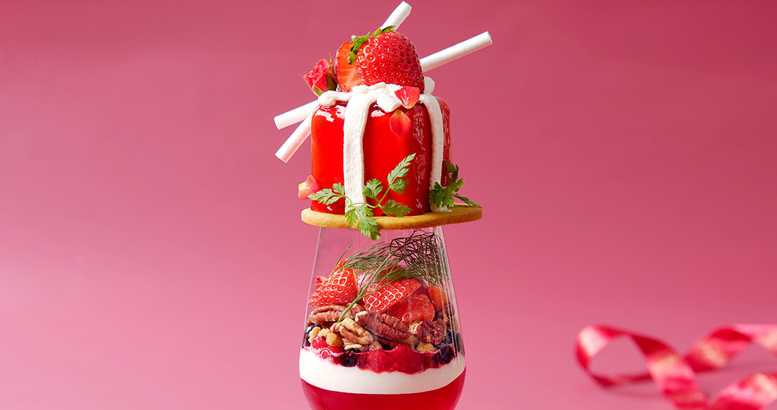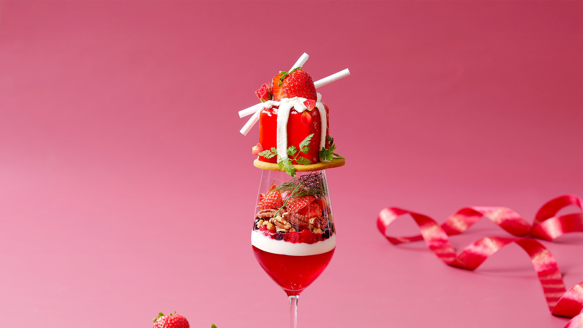 フェスティブシーズン限定で、深紅のギフトボックスをイメージした華やかなパフェが登場。
