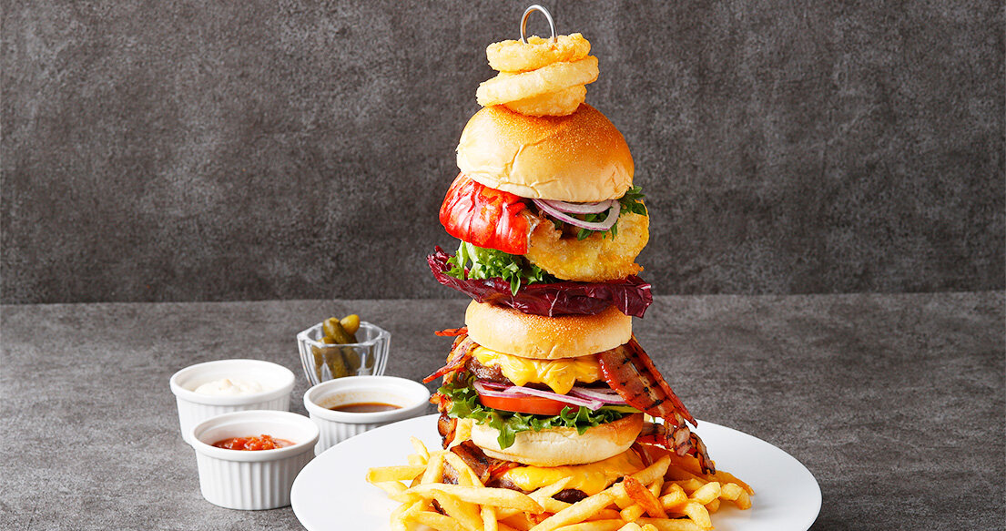 高さ約30cmの迫力を誇る、ラウンジ限定スペシャルバーガー。