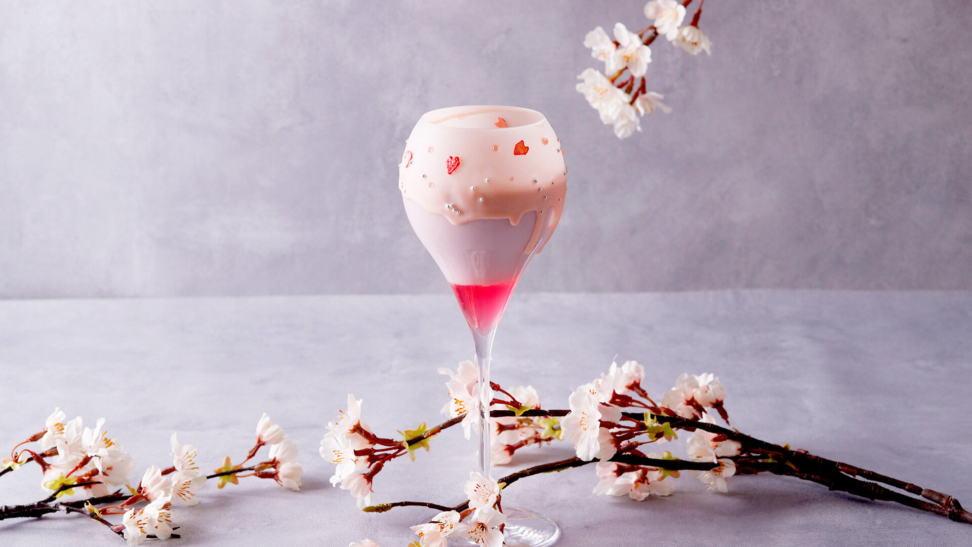 桜色に染まるドリップチョコレートが美しく滴る、春爛漫のシーズナルカクテルが登場。