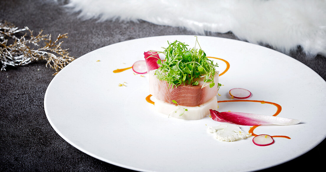 シャンパンで乾杯した後は、感性豊かなシェフによる芸術性の高いクリスマス限定フルコースを・・・