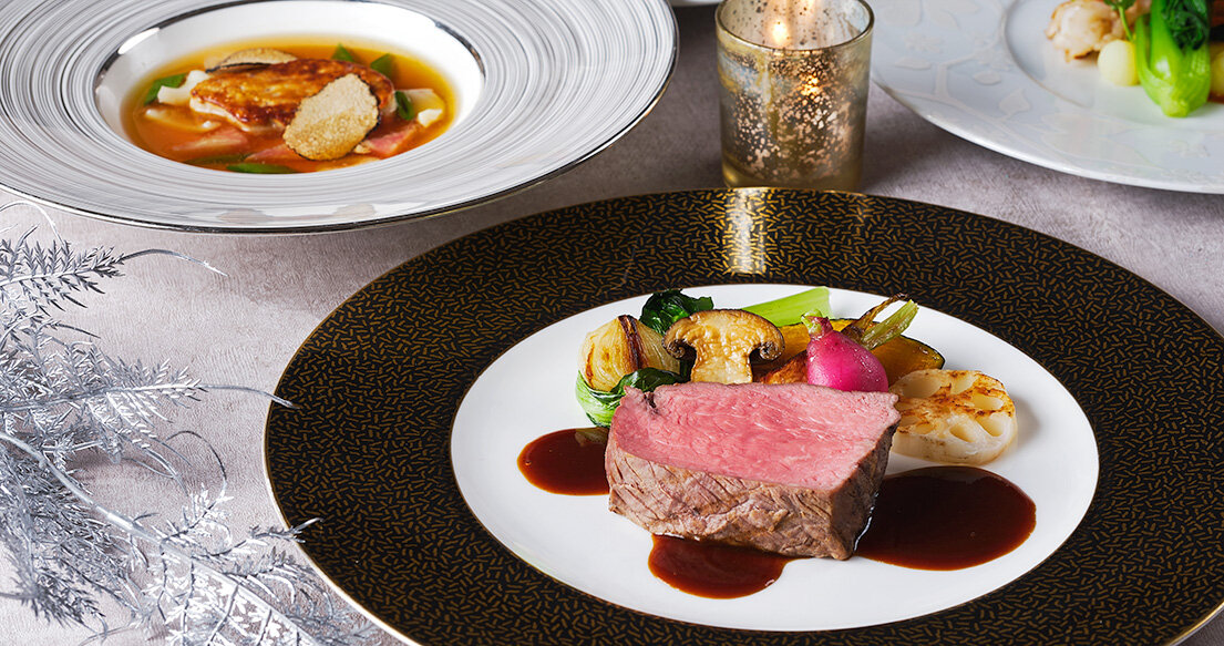 クリスマスらしい華やかなカラフル・アート・テリーヌと熟成肉をニューヨークグリルスタイルでアレンジしたフレンチをご用意しております。