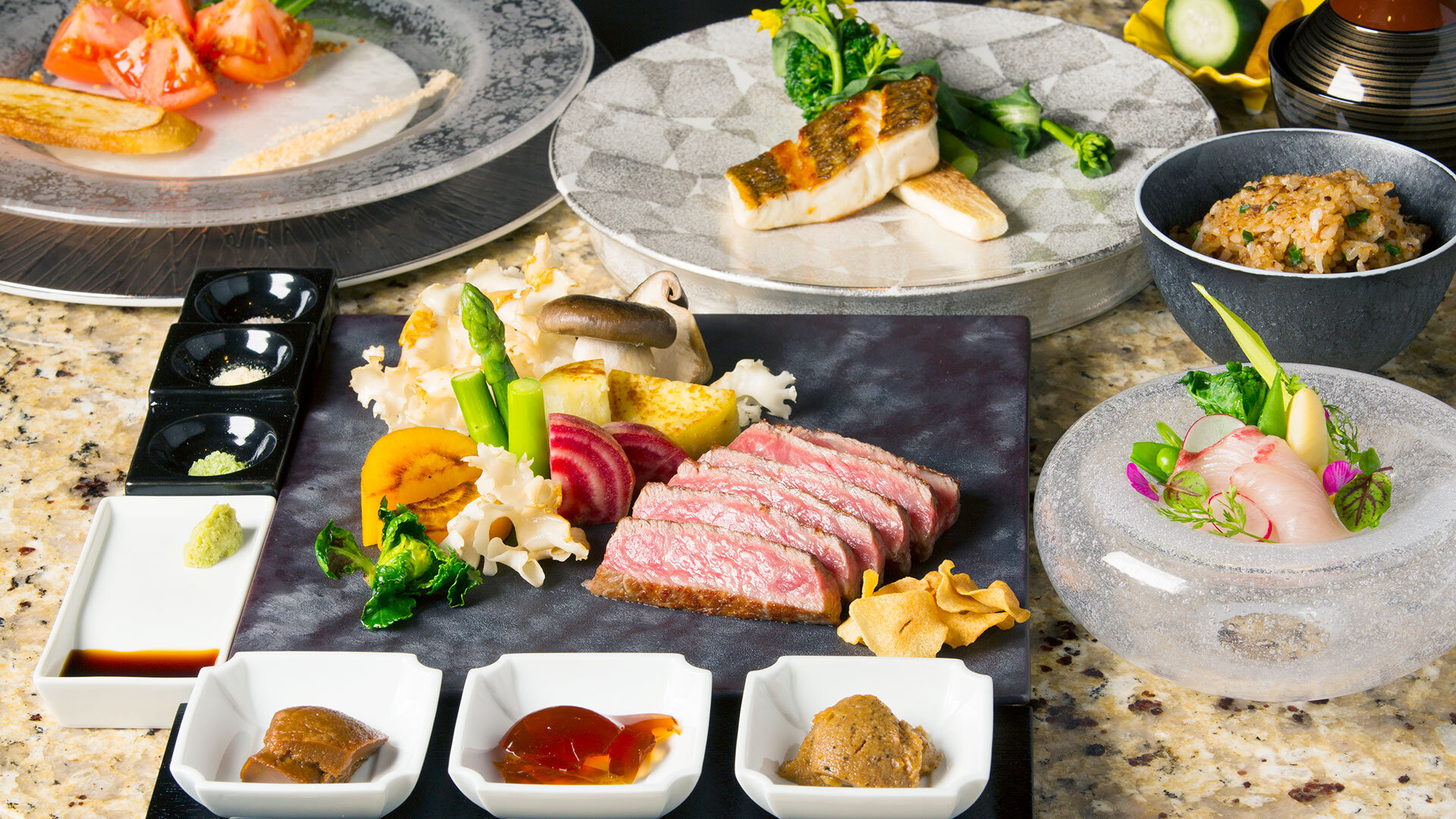 最高級の山海の幸が織りなす究極のマリアージュが、特別な一日を華やかに彩ります。