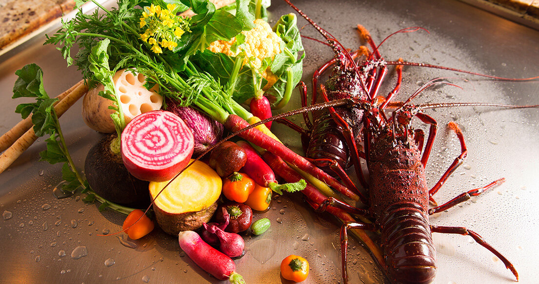 目の前で焼き上げる伊勢海老の香ばしさと弾けるような食感をお愉しみいただけます。