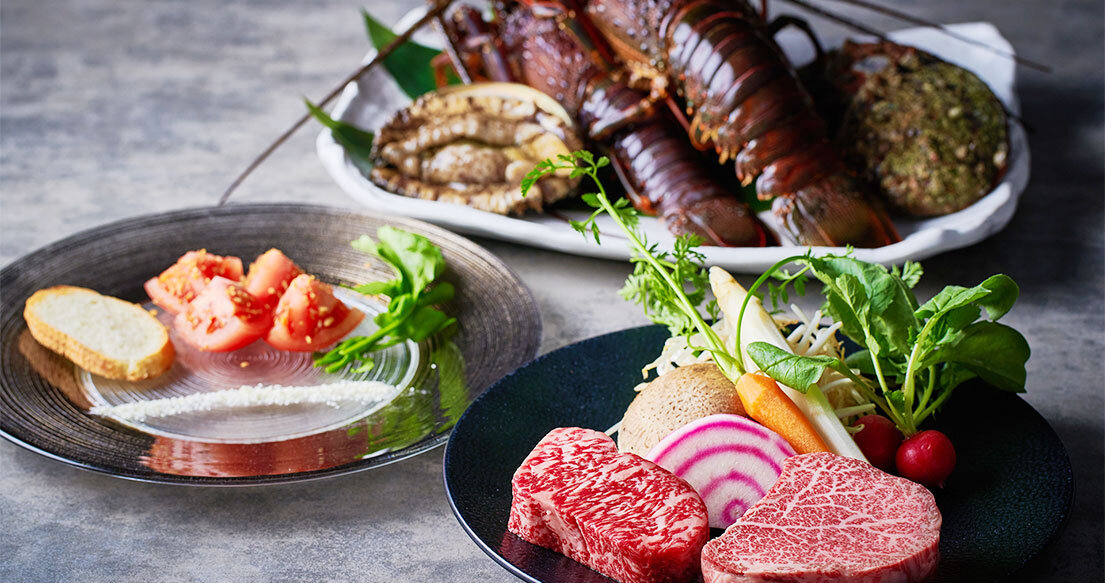 鉄板焼きの華「活伊勢海老」を豪快に、そして特選黒毛和牛の食べ比べと共にご堪能いただくプレミアムなコース。