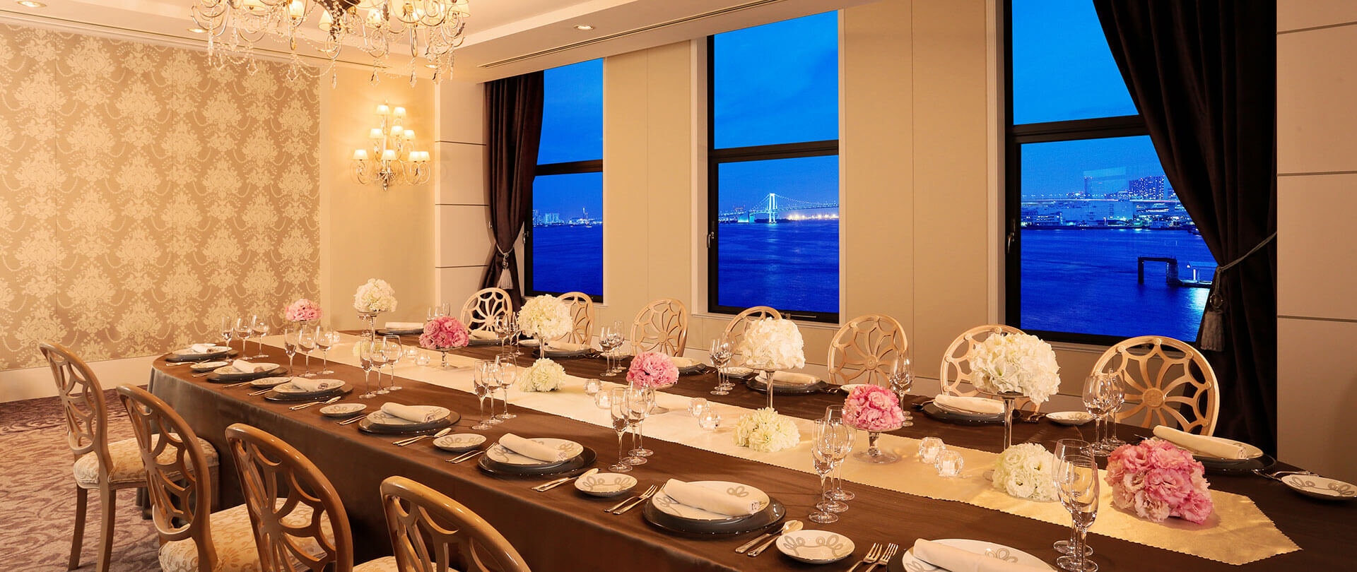 加勒比海宴會廳具備多功能用途,可滿足各類活動的舉辦需求。活動若為自助餐形式,可容納 40 位賓客;若為座位式晚宴,則可容納 30 位賓客,是小型聚會的理想之選。
