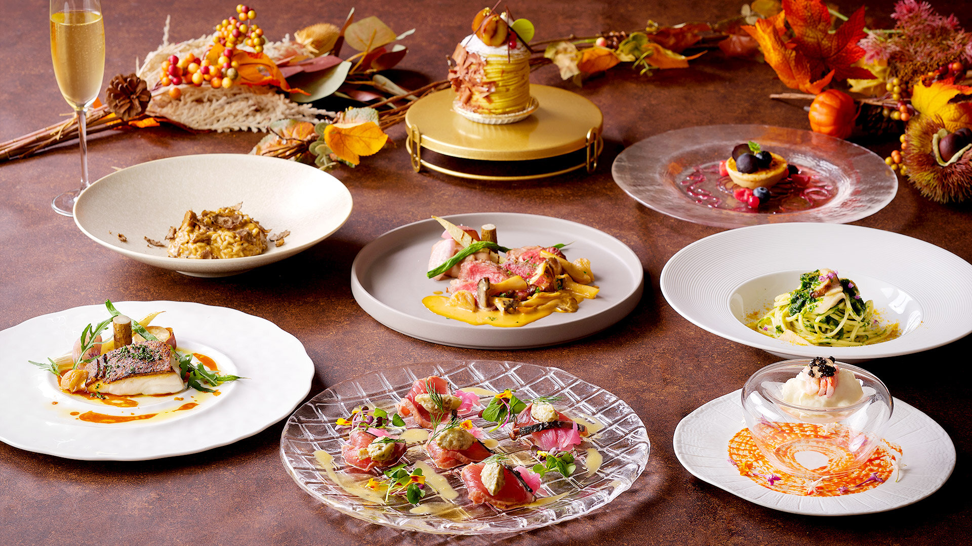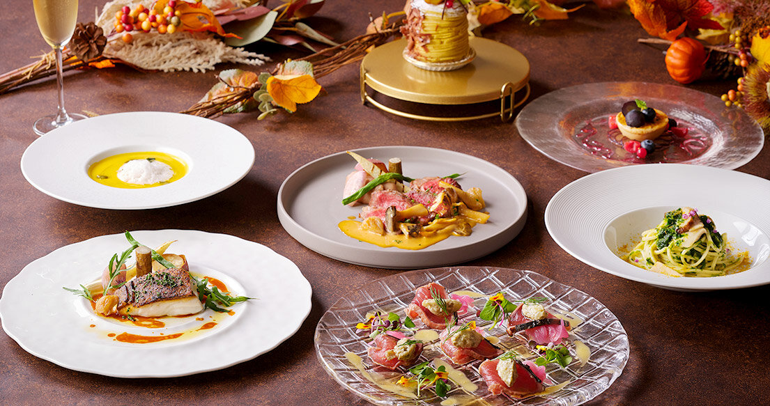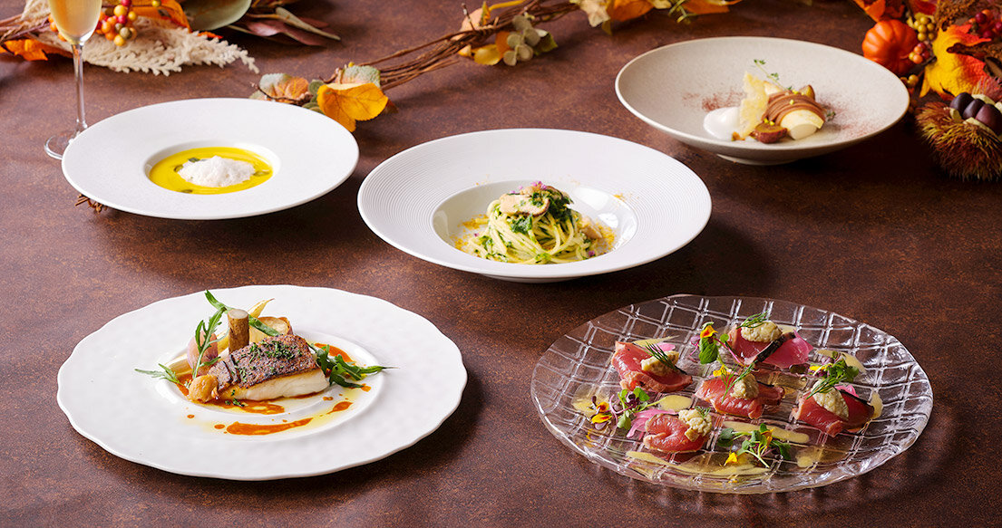 旬のフルーツスパークリングで乾杯した後は、秋の食材をふんだんに使用した本格イタリアンコースを堪能。