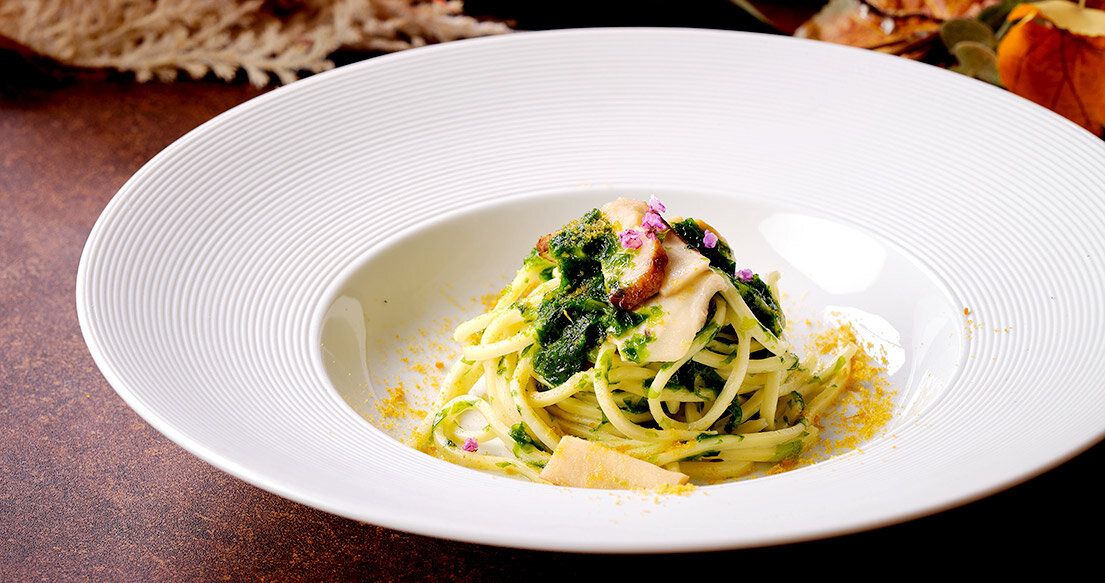 シェフ特製の松茸とカラスミのパスタをご用意。