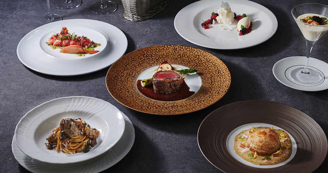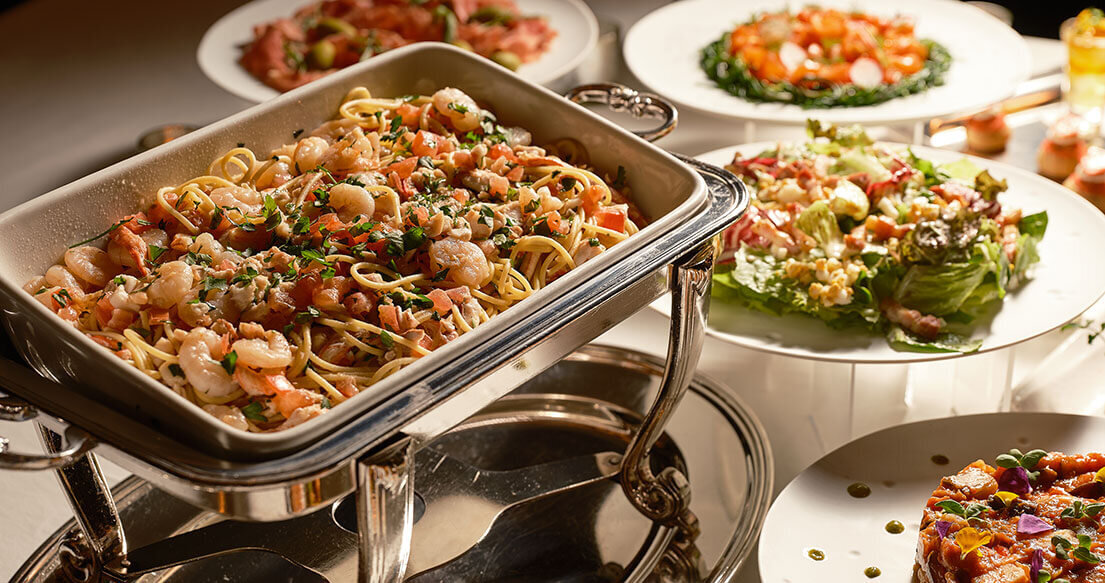 イタリアを代表する生ハムやサラミ前菜にシェフ特製パスタ、特選肉の盛り合わせなど季節感溢れるブッフェ料理と、季節を彩る前菜やポルチーニのパスタ、牛ほほ肉の煮込みなど贅沢感溢れるフルコースをフリーフローとともに特典付きのプランもご用意しております。